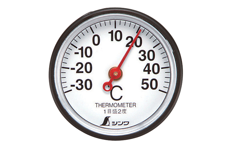 ●軽量タイプの丸型アナログ温度計です