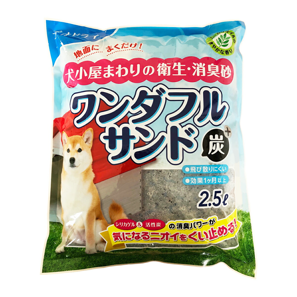 ペット 消臭 ワンダフルサンド 炭+ 2.5L 豊田化工 犬 消臭 ペット用品 抗菌 シリカゲル 犬小屋 消臭砂 ペット トイレ 犬小屋がクサイときに