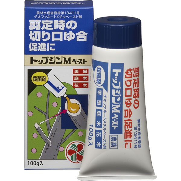 ペースト状の殺菌剤です。剪定・整枝時の切り口、胴枯病などの病患部を削り取った後の傷口に塗ることにより、病原菌の侵入を防ぎ、枯れ込みを防止し、切り口の回復を早めます。
