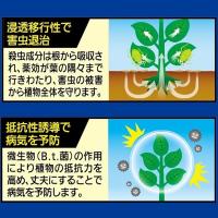 微生物(B.t菌)の作用により植物の抵抗力を高め、丈夫にすることで病気を予防します。(抵抗性誘導)