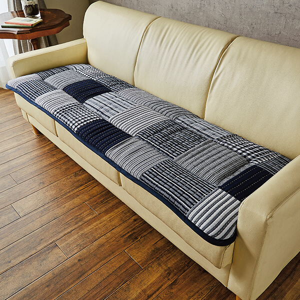 刺し子風ふかふかソファーパッド 3人掛け用50×150cm