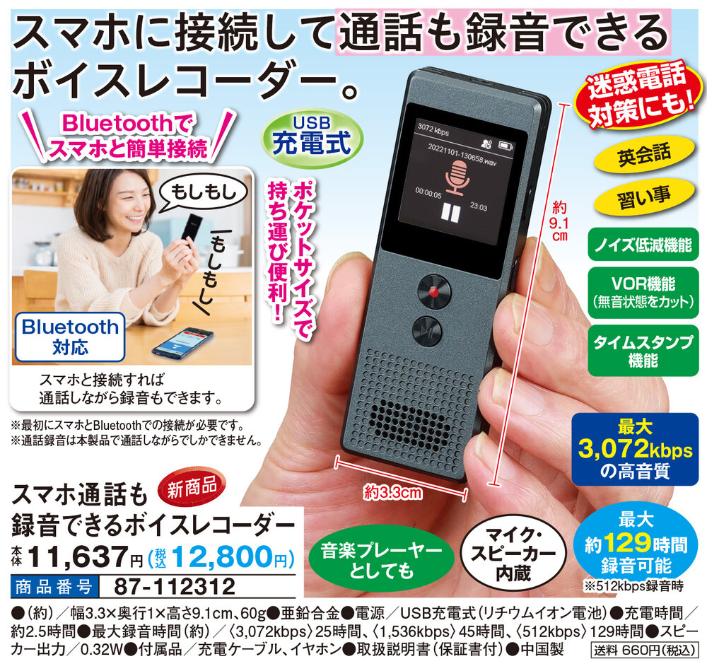 ※通話録音は本製品で通話しながらでしかできません。