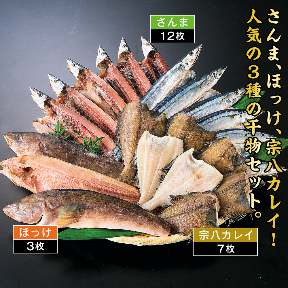 さんま、ホッケ、宗八カレイ!人気の3種の干物セット。