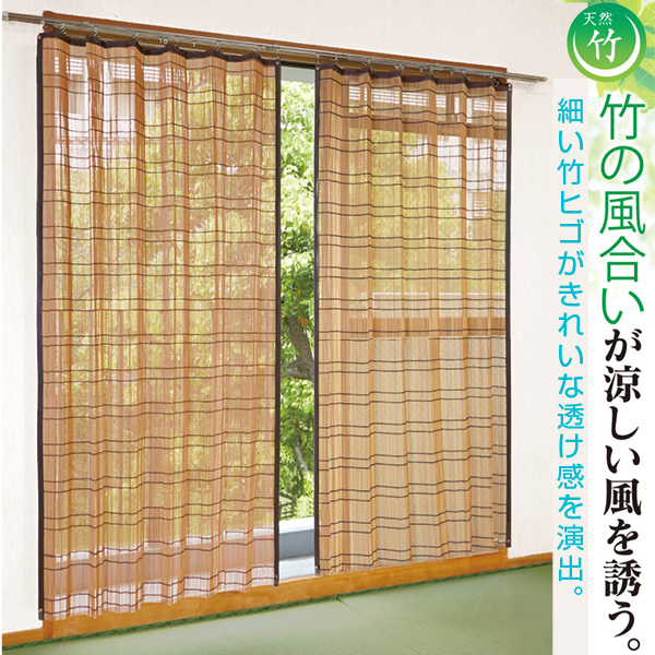 竹すだれカーテン 100×195cm(2枚組) 竹カーテン 竹製 すだれ 竹製カーテン カーテン 日差しカット 日除け 日よけ アコーディオン式 省エネ