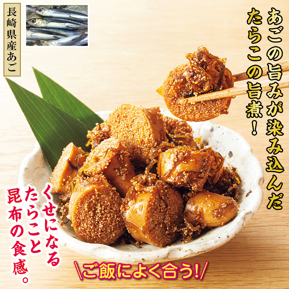 ●原材料/スケソウダラの卵巣(ロシア又はアメリカ)、昆布、食塩、醤油、酒、あご白だし、みりん、発酵調味料/甘味料(ソルビット)、調味料(アミノ酸)、着色料(カラメル色素)