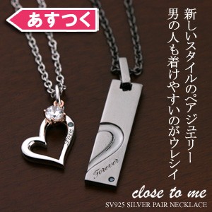 ペアネックレス シルバー ブルーダイヤモンド close to me (SN13-125(男性用)/SN13-126(女性用)) プレート&オープンハート 刻印可能 おしゃれ 30代 40代 50代