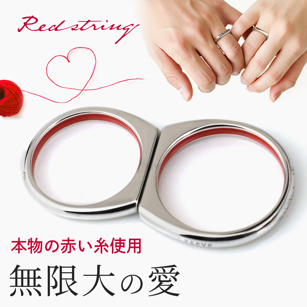 ペアリング ペアネックレス 本物の赤い糸が入った 刻印 シルバー 指輪 カップル ブランド アレルギー対応 名入れ つけっぱなし シンプル お揃い 大人 記念日