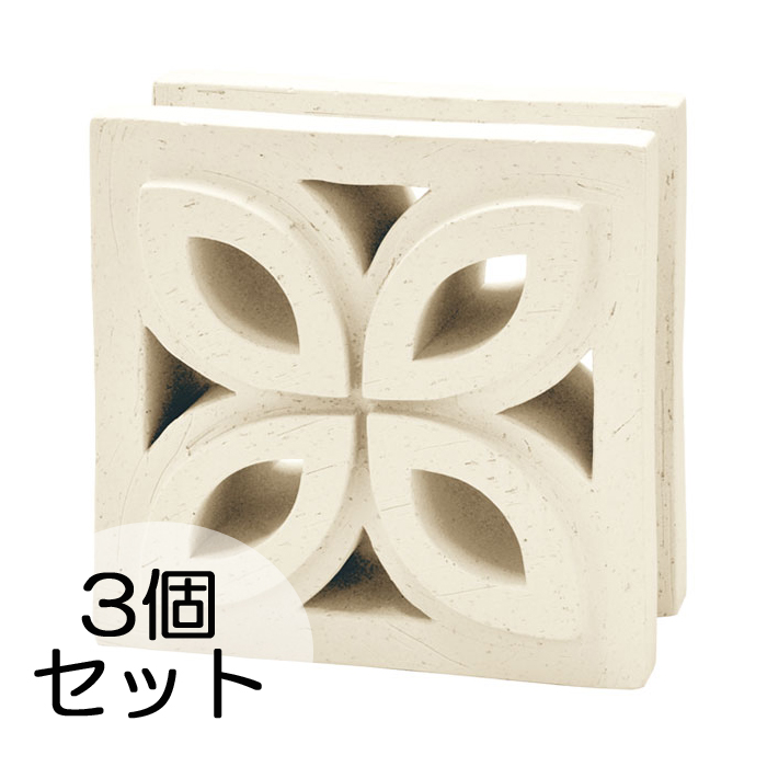 ブロック塀 アプローチ エントランス せっき質無釉ブロック ポーラスブロック200 190Fタイプ 白土(配筋溝あり・4本角溝) 3個セット単位 屋外壁 diy