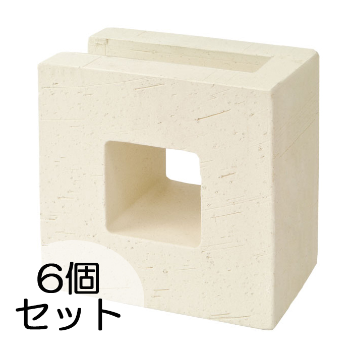 ブロック塀 アプローチ エントランス せっき質無釉ブロック ポーラスブロック150コーナー 白土 A(配筋溝あり・1面フラット) 6個セット単位 屋外壁 diy