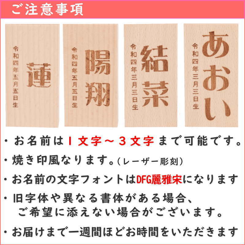 ★ご購入時に木札にお入れする【お名前】3文字まで【生年月日】「令和○年〇月〇日」をご記入下さい。