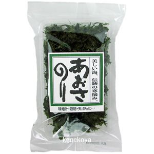 あおさのりは、自然のもので添加物、着色料等は一切使用しておりません。賞味期限内でも光線の影響により変色する場合がありますのでご注意ください(冷蔵庫での保管をお勧めします)。充分水洗いし、乾燥してありますが、多少貝・えびなどの異物が混入することがあります。必ずお取り除きご使用下さい。