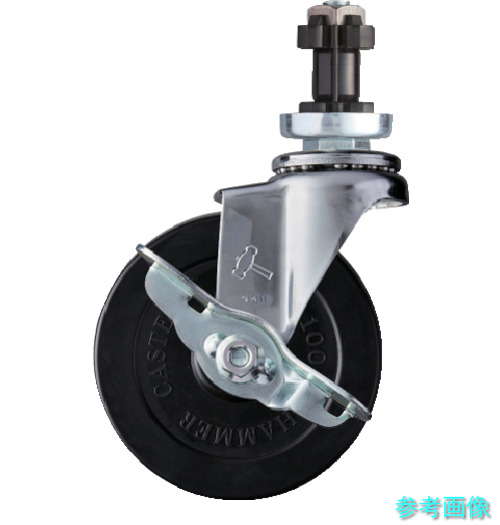ハンマー 4152EN-R100 パイプ差込み旋回式ゴム車輪(スチールホイール)100mm φ38用 ストッパー付 【1個】