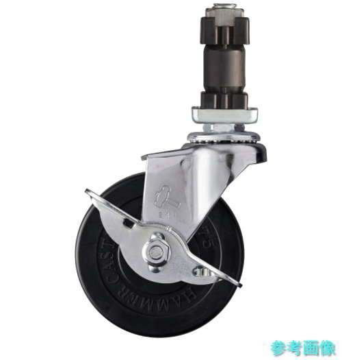 (ハンマー) 4154EN-R75 パイプ差込み旋回式ゴム車輪 75mm 角25用 ストッパー付 【1個】