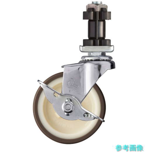 (ハンマー) 4155EN-UR75 パイプ差込み旋回式ウレタン車輪(ナイロンホイール)75mm 角32用 ストッパー付 【1個】