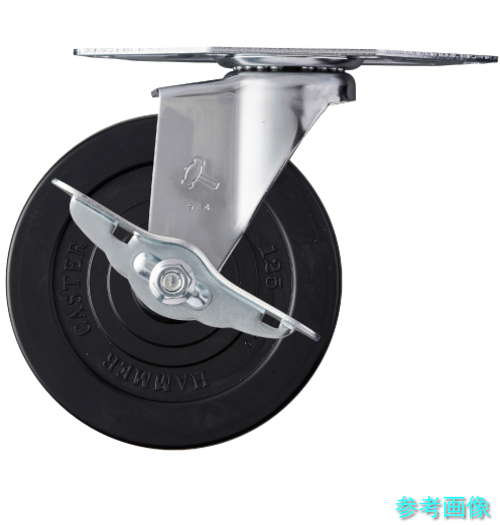 (ハンマー) 215E-RDB125 Eシリーズコーナー 旋回式ゴム車輪(ローラーベアリング)125mm ストッパー付 【1個】
