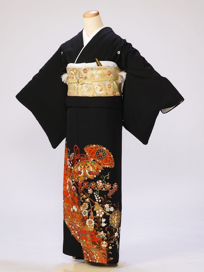 留袖レンタル フルセット 4A599 143cm〜153cm 11号 Mサイズ 黒留袖 結婚式 母親 和服 列席 親族 留袖 送料無料