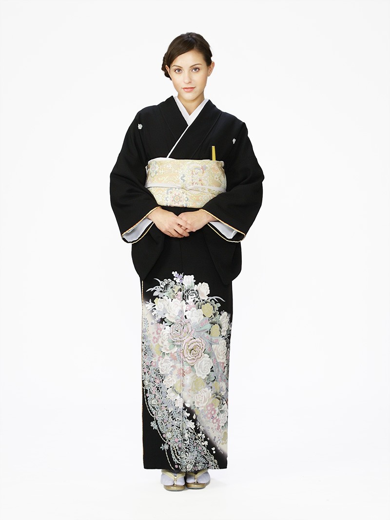 ■色/柄 薔薇ブーケ 箔 袖口に金の重ね