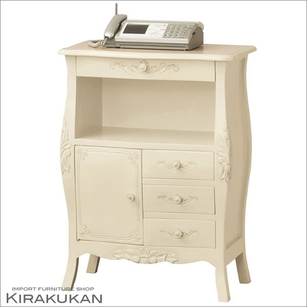エリーゼ ホワイト ファックス台 TEL台 白家具 イタリア 姫系 カフェ 送料無料