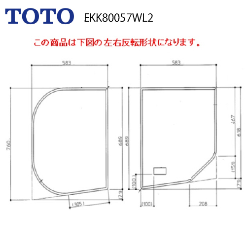 風呂ふた 組みふた バスルーム 新築マンション用 RD ラウンド浴槽 1200用 TOTO [EKK80057W(L/R)2] EKK80057WL2 EKK80057WR2 割フタ 断熱材なし仕様