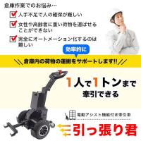 商品説明 : □最大1000kgまで1人で牽引が可能。重い台車も楽に運搬できる電動アシスト牽引車