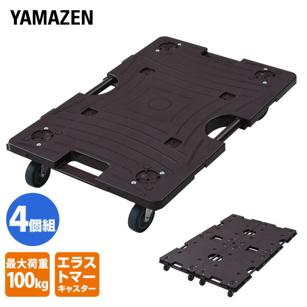 スマート連結平台車(大) 4個組 エラストマーキャスター NTRL-E65*4 DBR 平台車 台車 家庭用平台車 ホームキャリー キャリーカート 連結平台車 山善 YAMAZEN