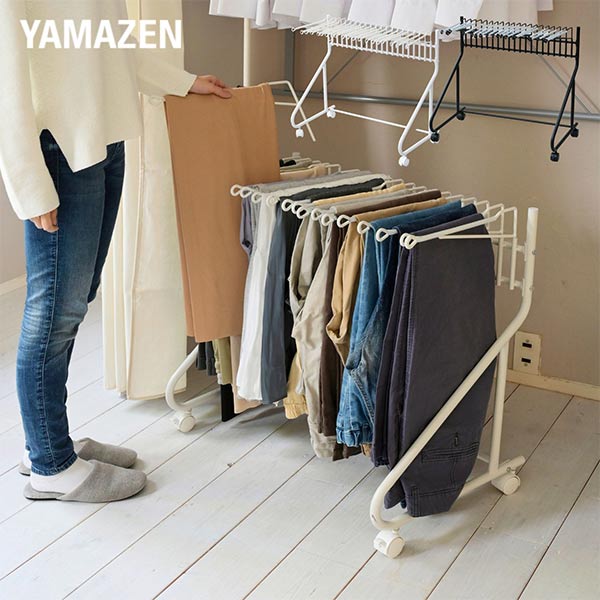 スラックスハンガー パンツラック 跡がつかない 20本 キャスター コンパクト ハンガーラック パンツハンガー クローゼット 押し入れ パンツラック 山善 YAMAZEN