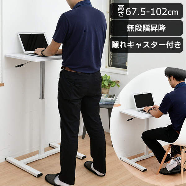 昇降テーブル キャスター付き 簡単スムーズ昇降 高さ67-102 幅60 奥行45 ソファテーブル サイドテーブル パソコンテーブル スタンディングテーブル 山善