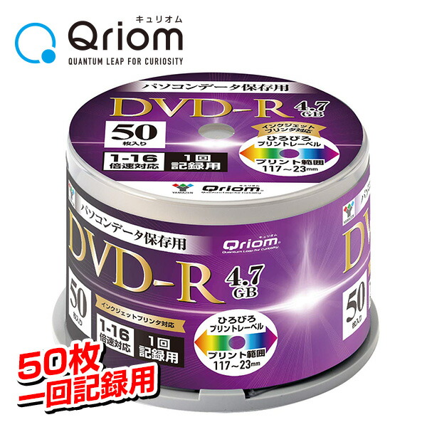 データ記録用 1回記録用 DVD-R 超高速記録対応 1-16倍速 50枚 4.7GB キュリオム QDVDR-D50SP DVDR データ データ記録 スピンドル 山善
