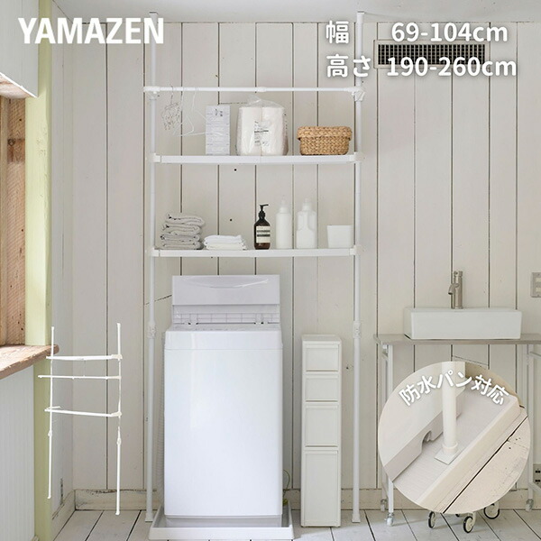 ランドリーラック 防水パン 洗濯パン対応 棚2段 突っ張り 伸縮 洗濯機ラック 洗濯機上 洗濯機 収納 洗面所 脱衣所 隙間 すきま すき間 ラック 棚 山善 YAMAZEN