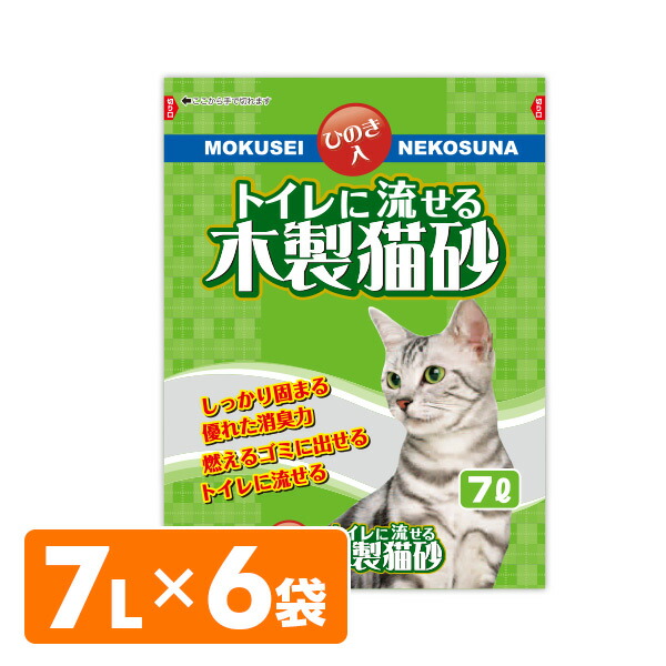 日本製 トイレに流せる木製猫砂 ひのき 7L×6袋 猫砂 ねこ砂 ネコ砂 木製 固まる 猫用品 トイレ用品 猫トイレ ヒノキ おがくず ニオイ におい 消臭 常陸化工