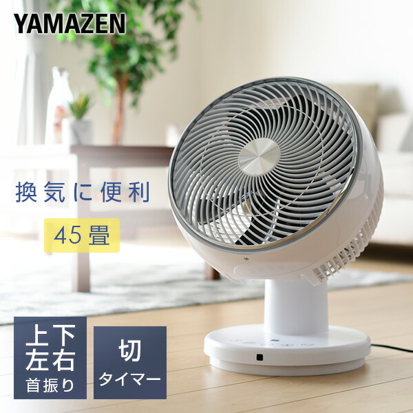 サーキュレーター 45畳 大風量 上下左右自動首振り 上向き90度 風量3段階 室温表示 リモコン YAR-W305(W) エアーサーキュレーター 大型 山善