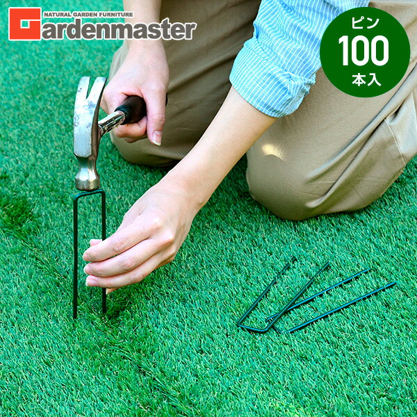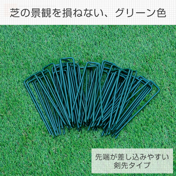 人工芝 ピン おさえ 押さえ 100本入り RJP-50*2 グリーン 人工芝押さえピン コの字ピン杭 シート押さえ 山善 ガーデンマスター