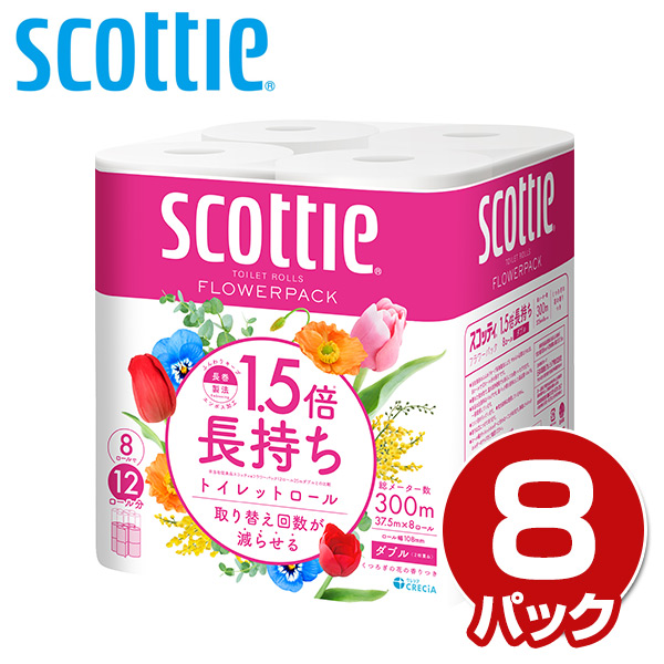 スコッティ トイレットペーパー フラワーパック 1.5倍長持ち 8ロール ダブル