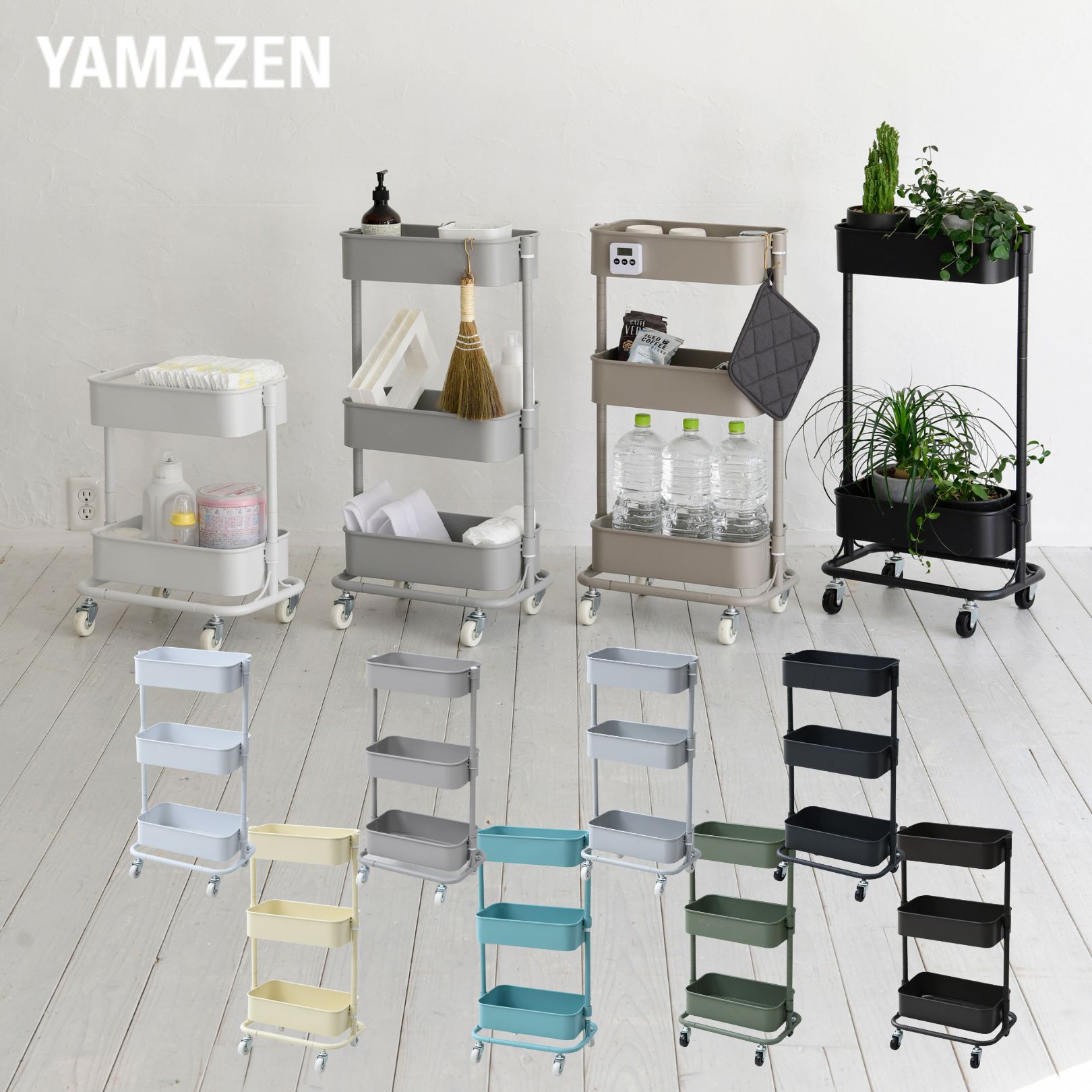 ワゴン キッチンワゴン スリム おしゃれ キャスター付き 高さが変えられる バスケットトローリー スリムトローリー 3段 山善
