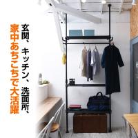 ●3段の棚とハンガーバー、フックがセットになった大容量収納