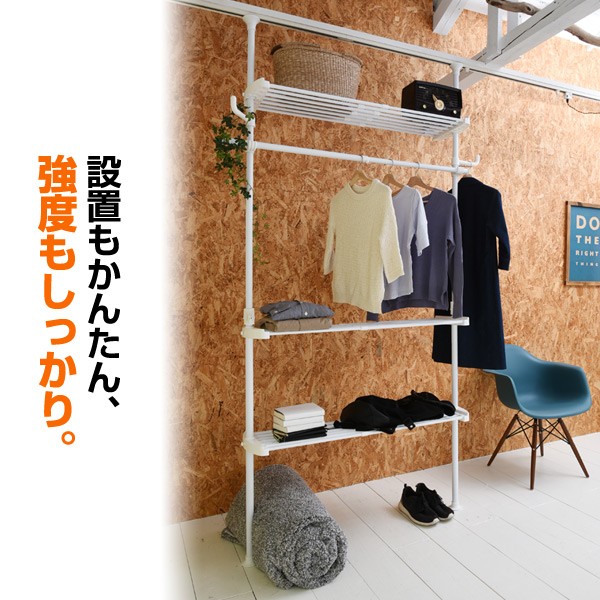 頑丈 伸縮 突っ張り棚 幅78-130 WJZ-775 つっぱりラック ハンガーラック クローゼット 突っ張り シェルフ 棚 伸縮 収納 ラック つっぱり棚 ドリームウェア