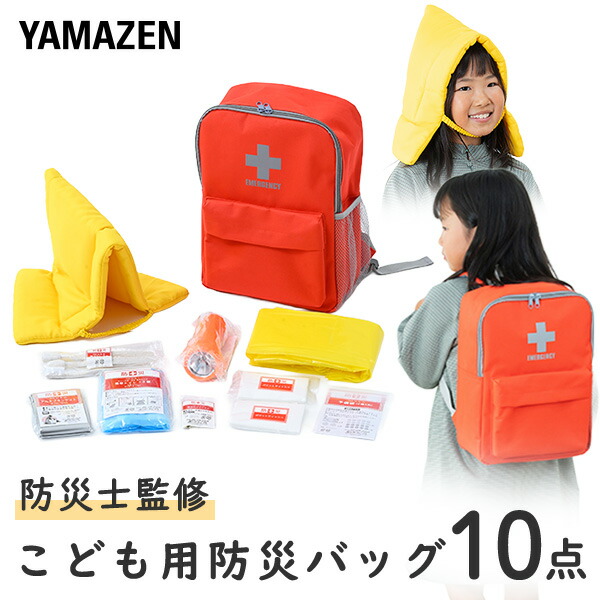 防災グッズ 防災セット 防災士監修 一次避難用 子供用10点セット 1人用 避難 地震 非常用持ち出し袋 防災リュック 防災バッグ 台風 YCB-10R 山善 YAMAZEN