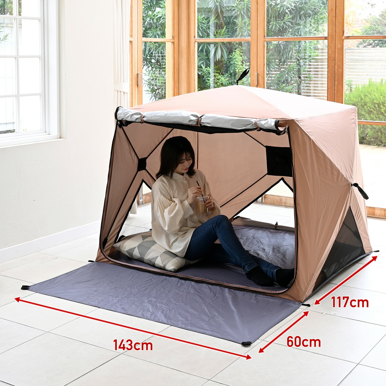傘みたいに広げるだけ パッとサッとサンシェード キューブ フルクローズ メッシュ