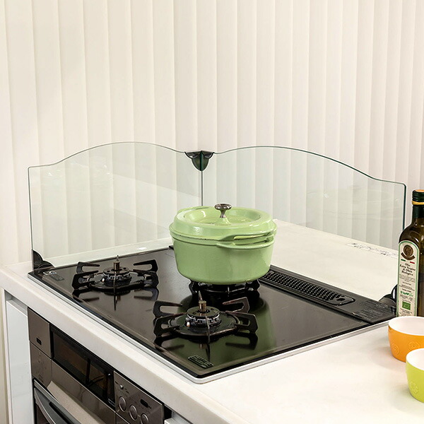 (日本製) レンジガード IR-800 コンロガード おしゃれ ガラス 日本製 ガスコンロ ビルトインコンロ IH システムキッチン 油はねガード 強化ガラス L字型