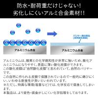 ●本体に耐久性の高いアルミニウム合金を使用。鉄の1/3程度の軽さ。大気中から安定的な酸化被膜を作る性質があるので、耐食性に優れており、電磁波や熱反射に強く、低温環境で使用した際に起こる脆化破壊が起こりにくい。非磁性なので磁気の影響を受けにくい