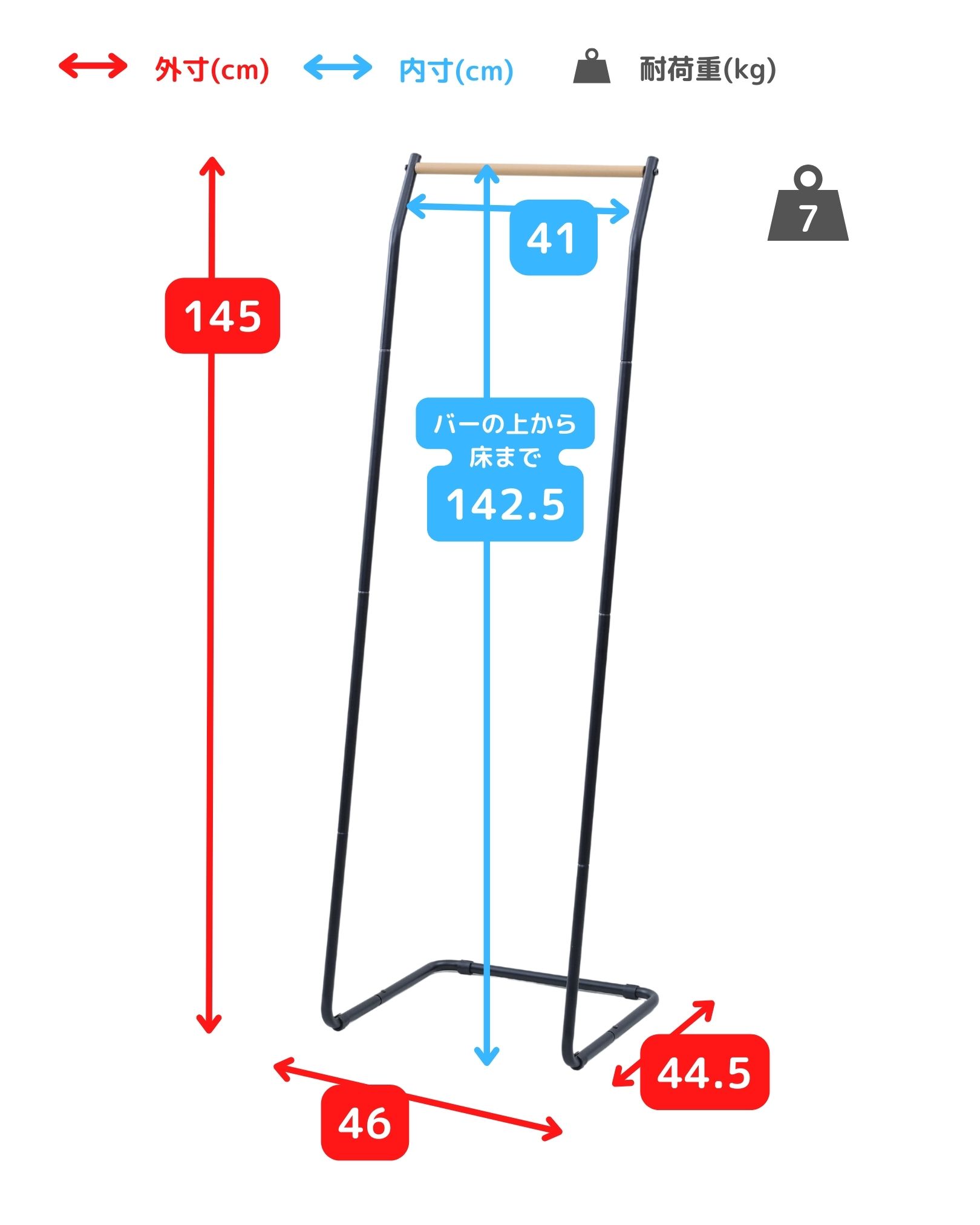 ●ハンガーバー内寸: 幅41 高さ142.5cm