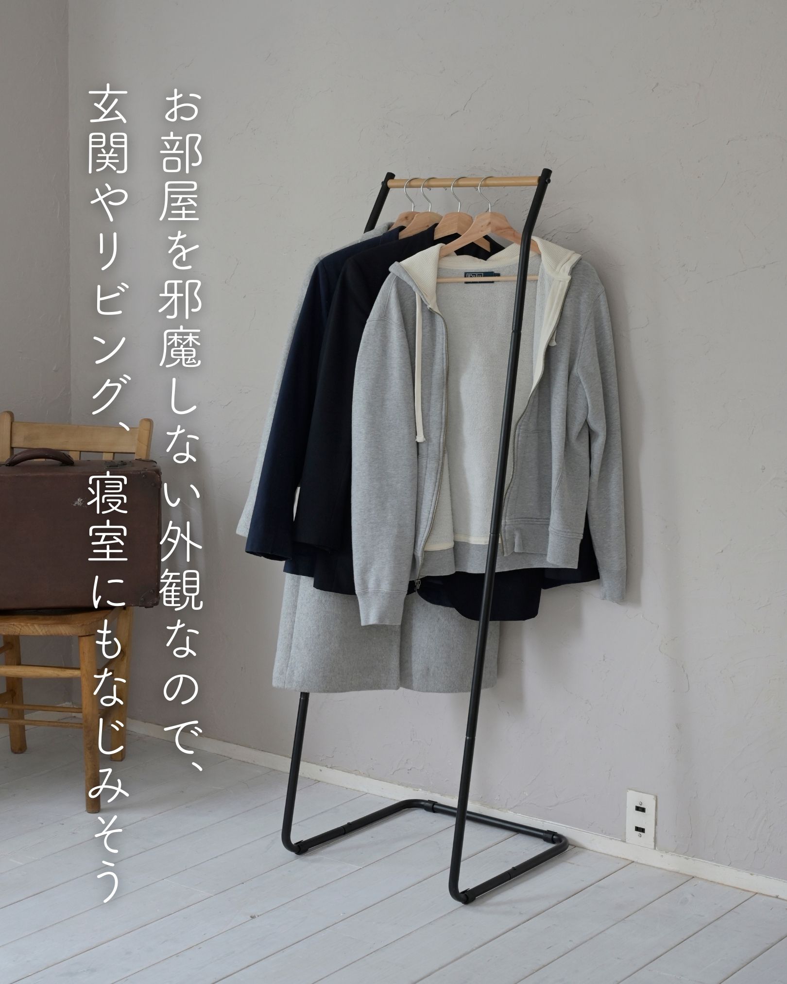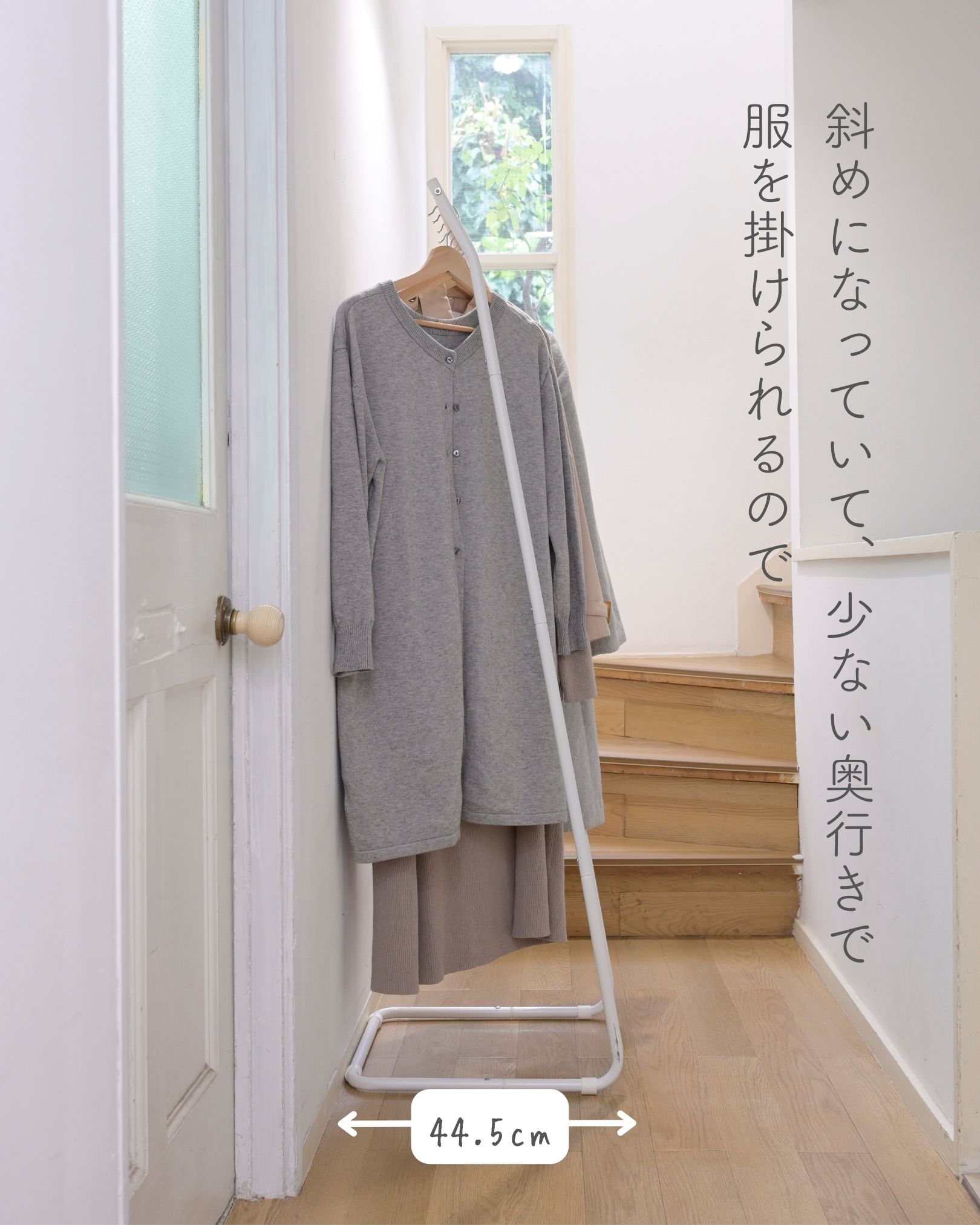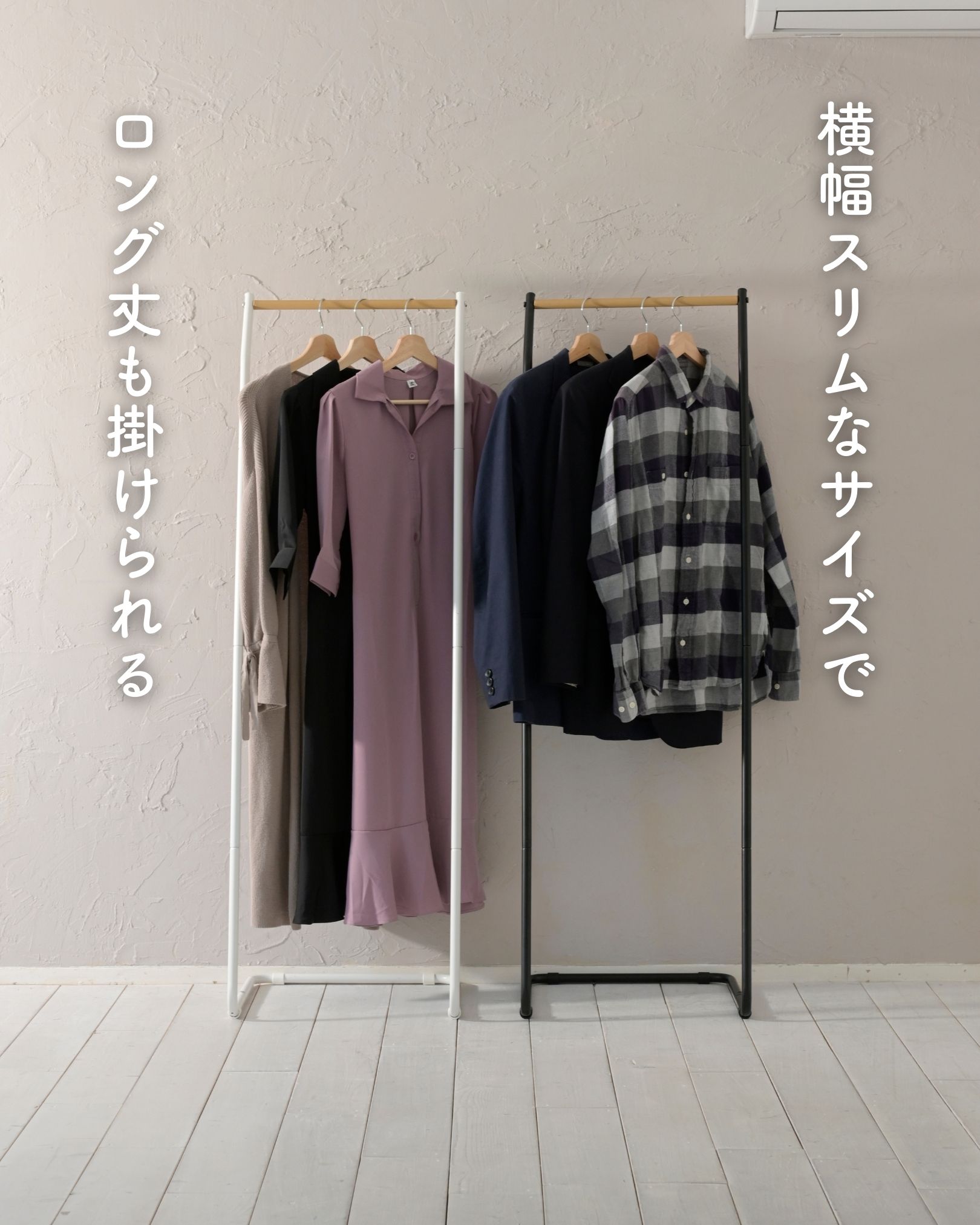 ●コートやワンピールを掛けられる、ロング丈対応モデル