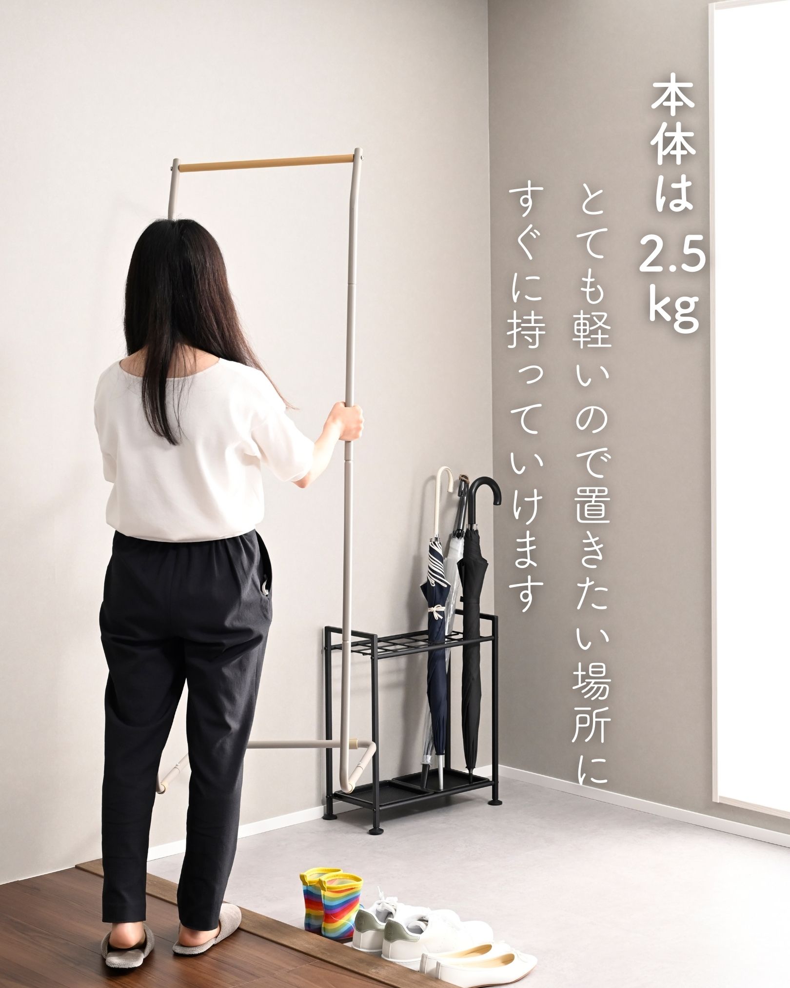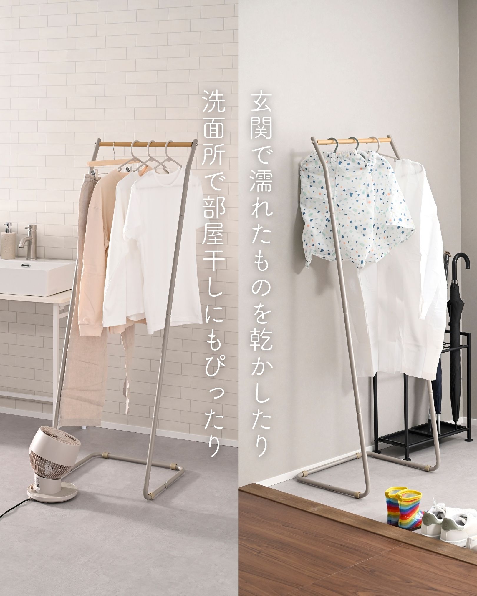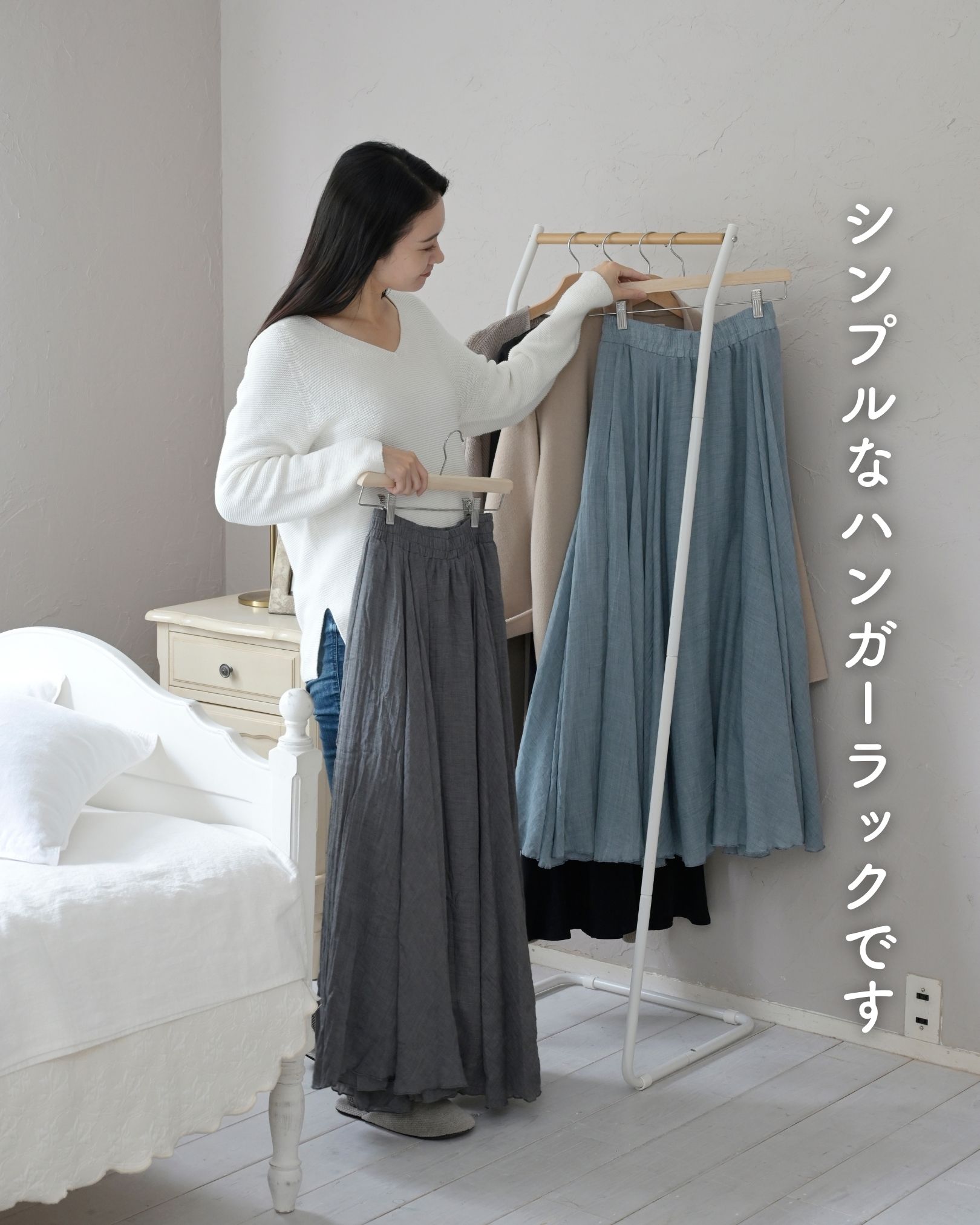 ●コートやワンピールを掛けられる、ロング丈対応モデル
