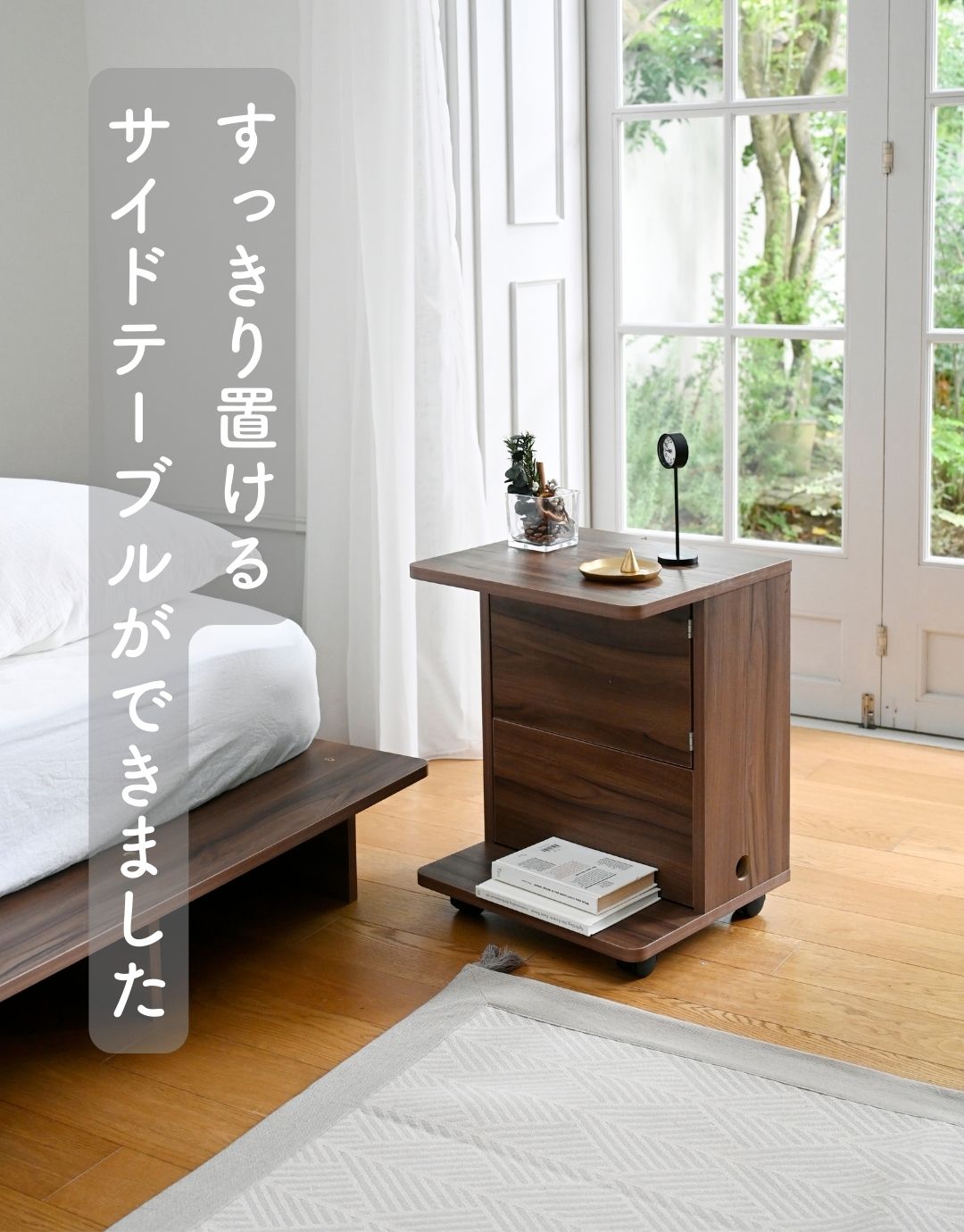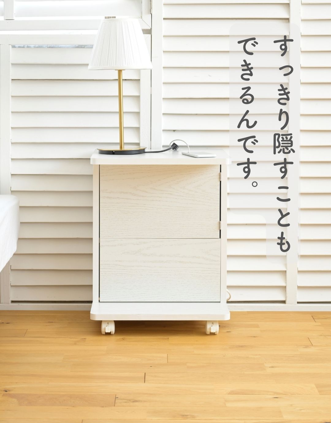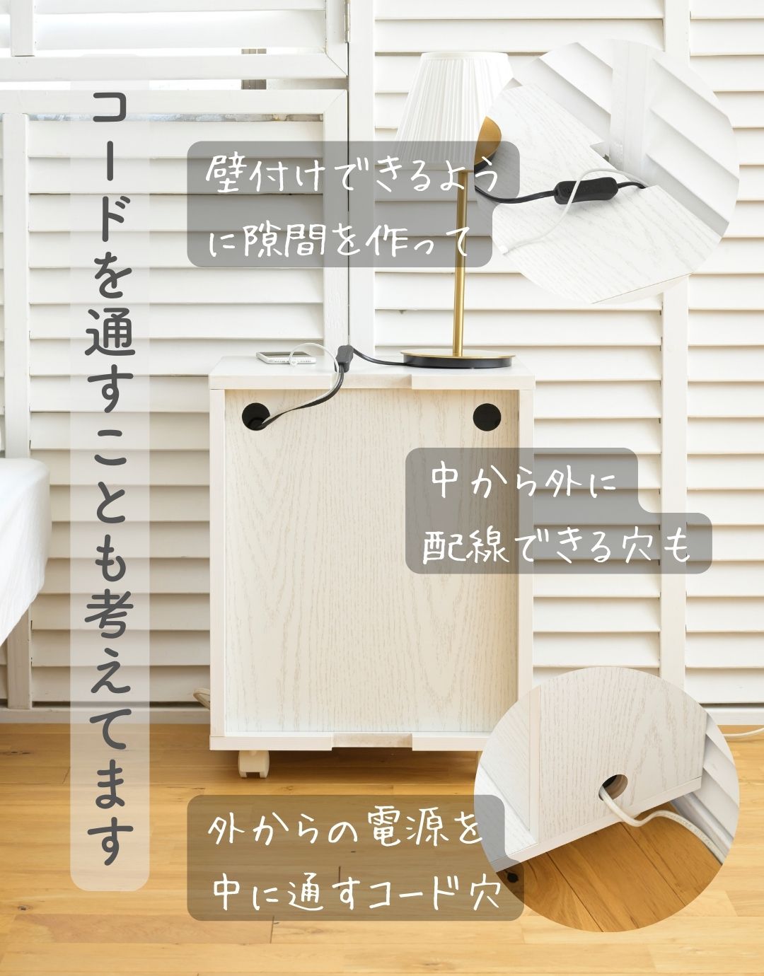 コードが隠せる サイドテーブル キャスター付き 本体完成品