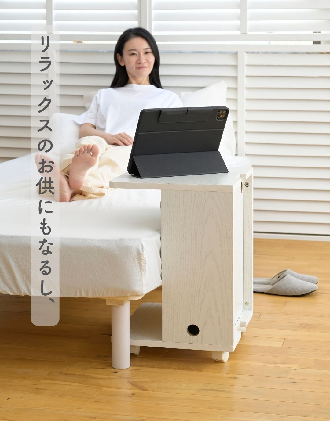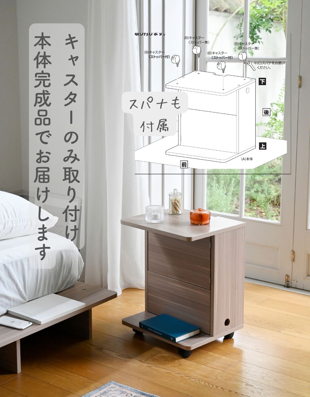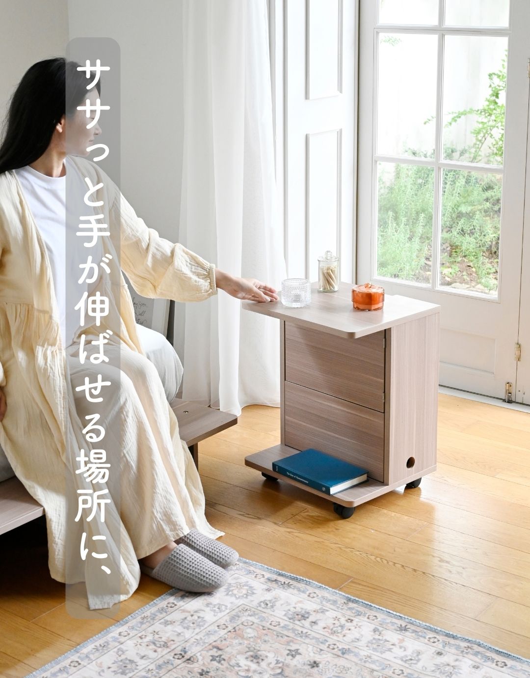 コードが隠せる サイドテーブル キャスター付き 本体完成品