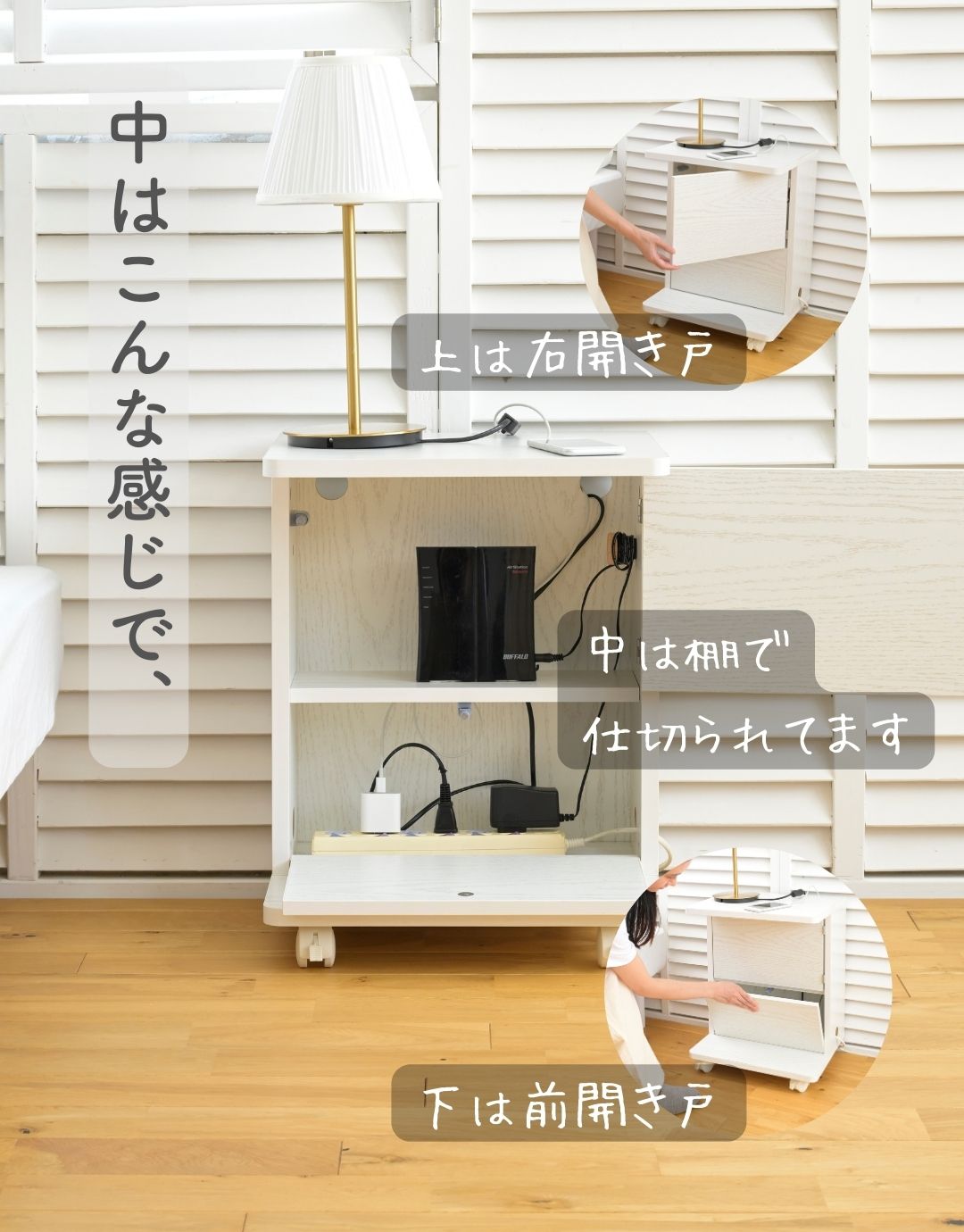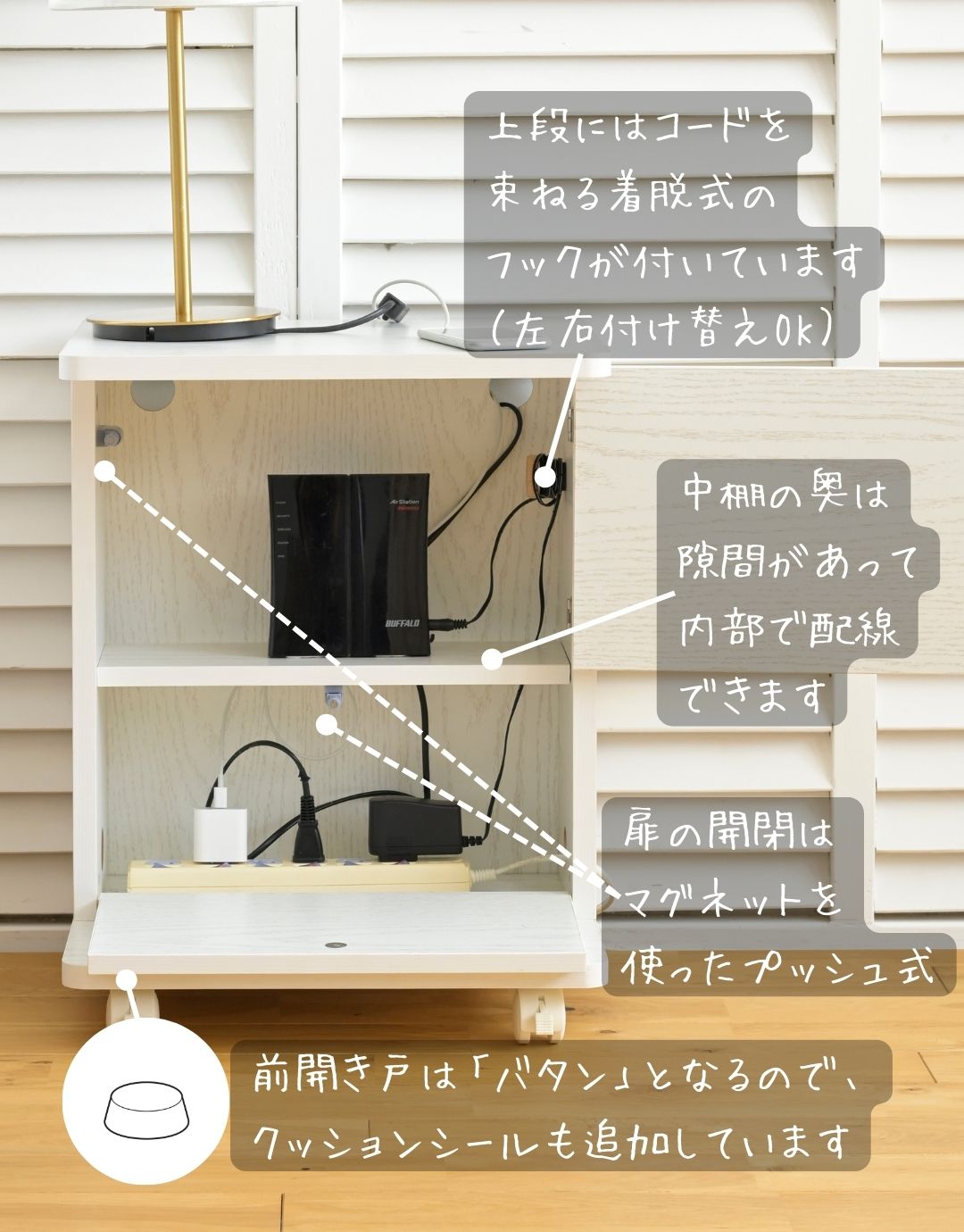 ●内部には電源タップやルーターを隠せる収納スペース