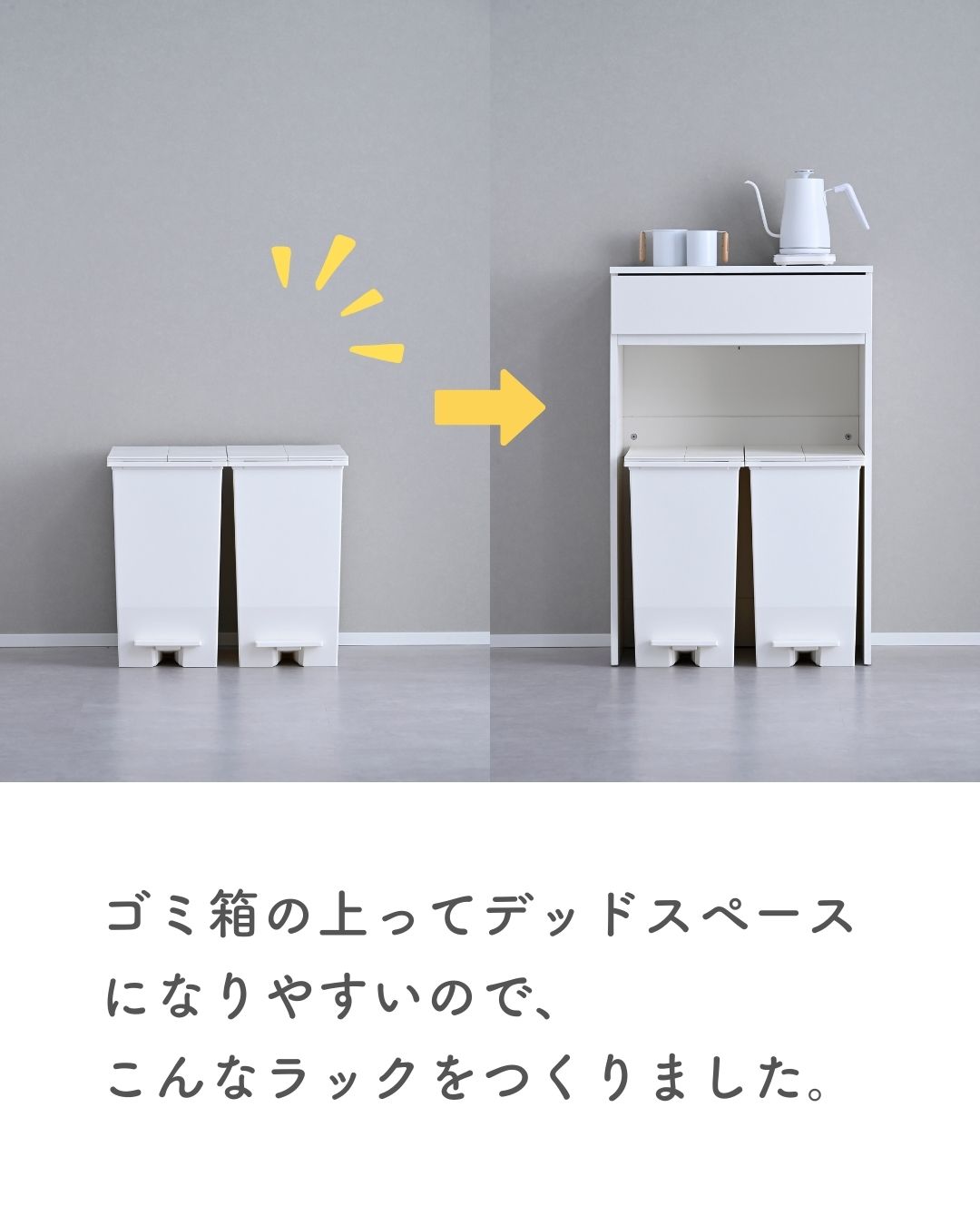●ゴミ箱置き場を収納や作業に使える収納ラック