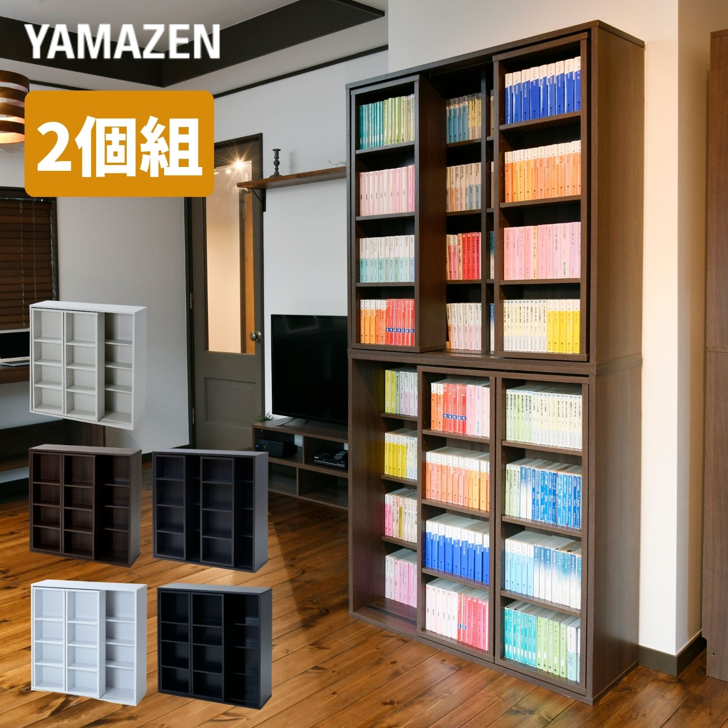 本棚 大容量 2個組 スライド本棚 ダブルスライド 幅90 奥行29 高さ92 cm 連結可能 スライド書棚 書棚 棚 シェルフ 山善