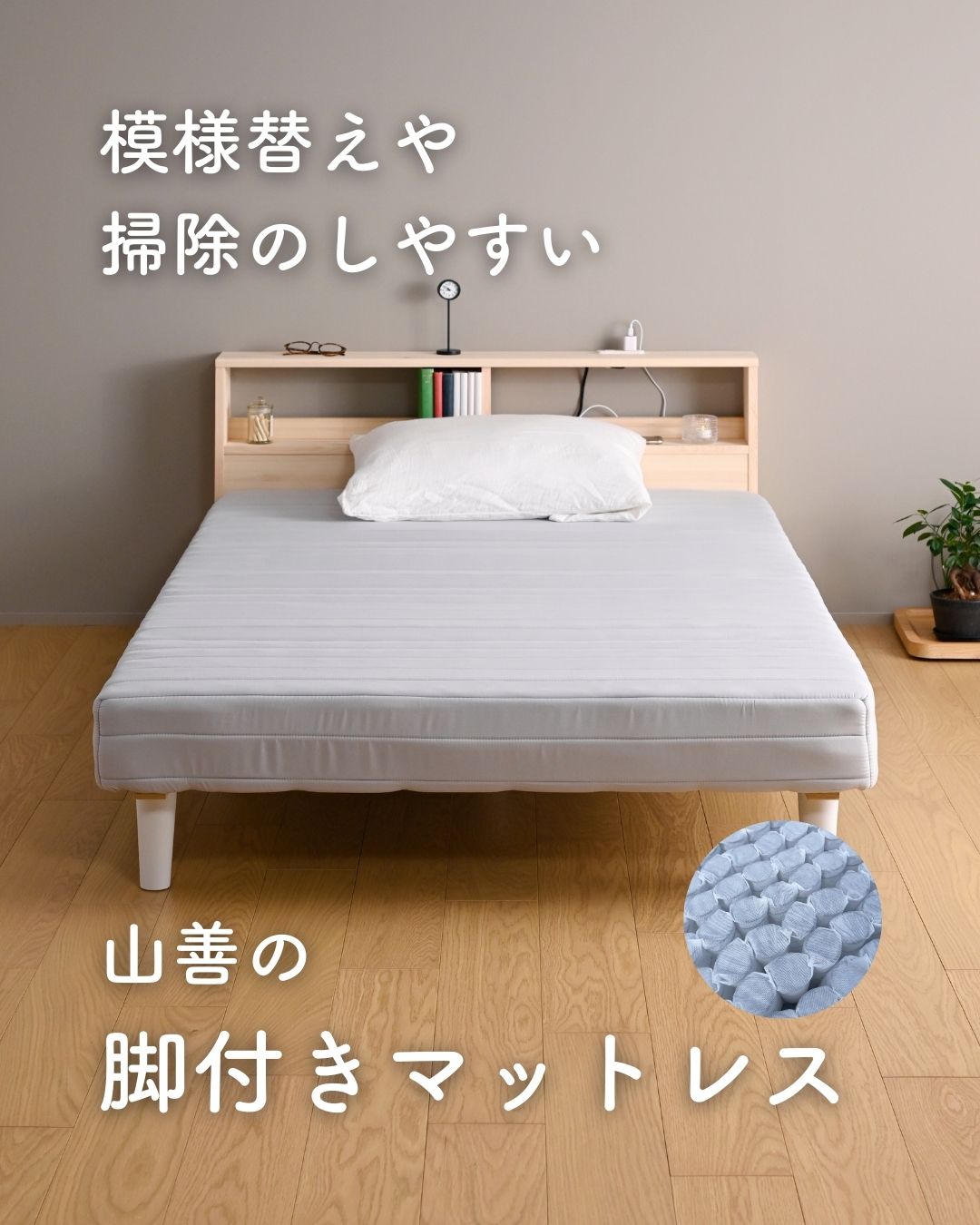 ベッド 脚付きマットレス セミダブル 組み立て簡単 ポケットコイル 570個 一体型 幅140 奥行195 高さ36cm マットレス 山善
