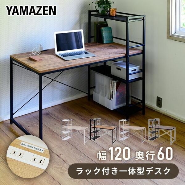 デスク シンプル 幅120 奥行60 2口コンセント 収納ラック付き 左右入れ替え可能 MRPE-1260 机 テーブル ワークデスク パソコンデスク 学習机 勉強机 山善